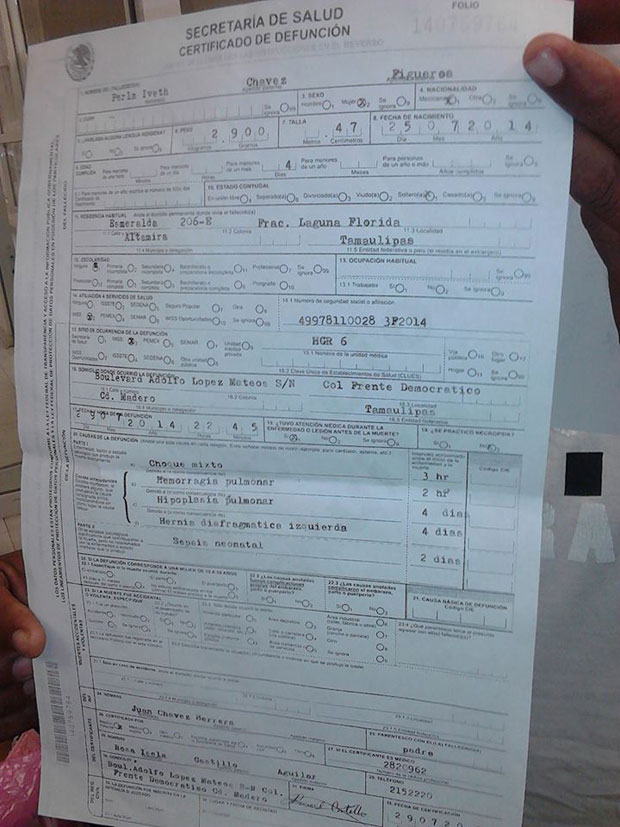 Las futuras madres que esperan el alumbramiento, “las están enviando constantemente a sus domicilios, una ginecóloga dice una fecha, otra ginecóloga afirma -cuando llega a urgencia- otro día”2, todo apunta a negligencias médicas que no están siendo reportadas a derechos humanos.