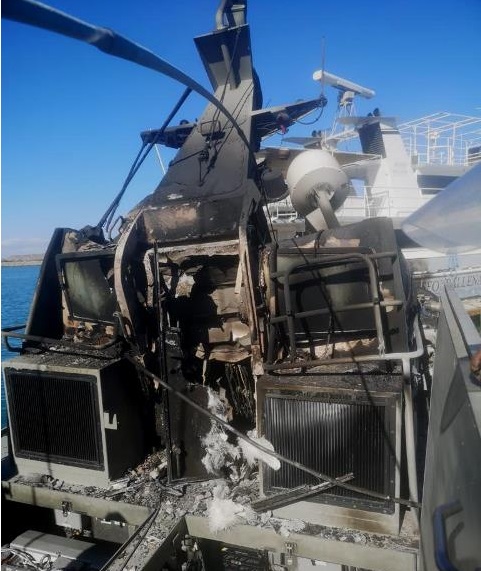 “Cerca de las 11:50 horas, el Mando Naval informó que continuaba la agresión, esta vez la Patrulla Interceptora ARM 1410 Albireo, que se encontraba atracada en el muelle, fue incendiada por personal civil agresor, hecho del que resultó herido un elemento naval, tripulante del ARM 1410 Albireo, al recibir impacto en la cabeza, ya que parte de la agresión se di mediante el lanzamiento de objetos”.