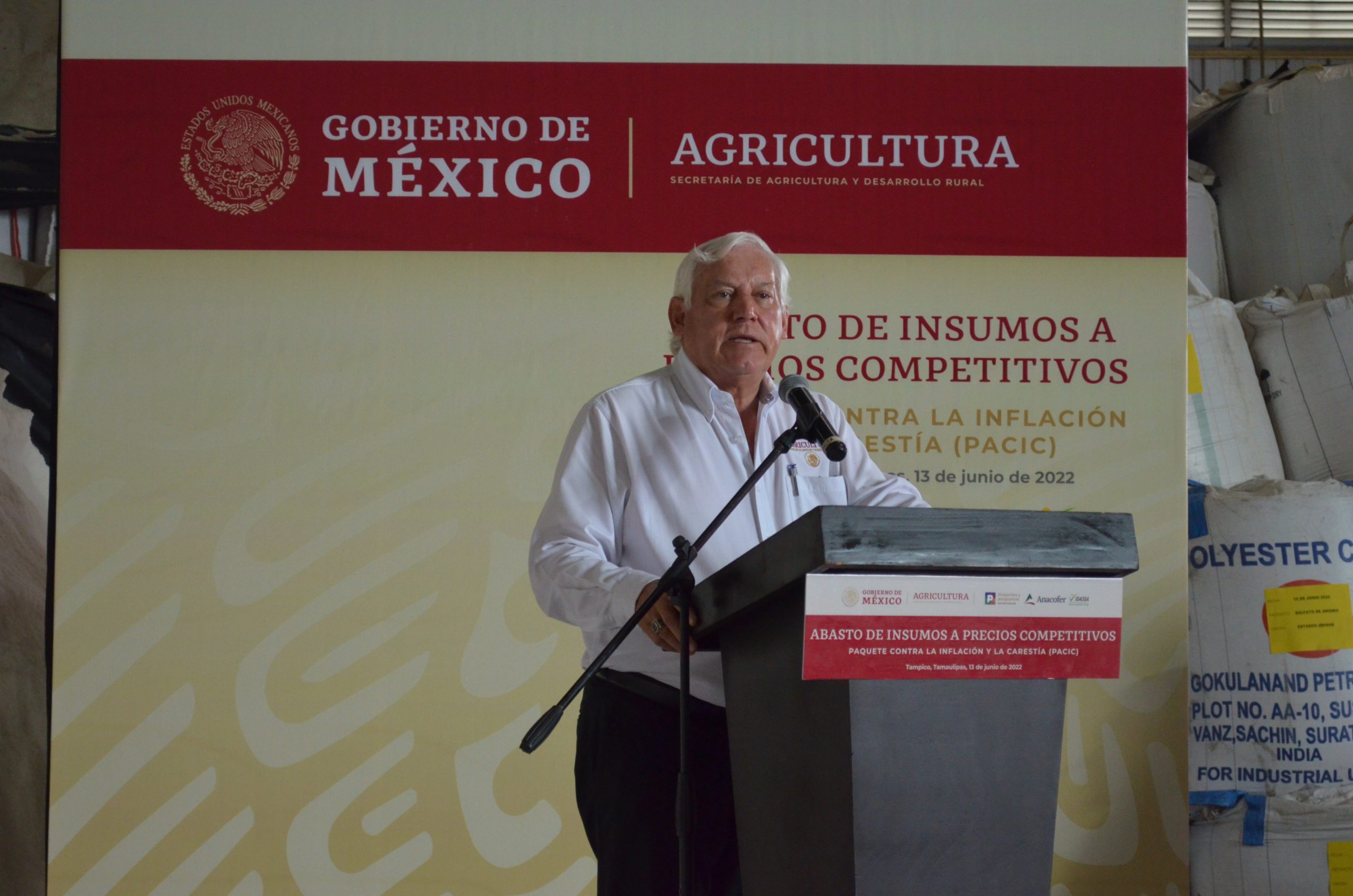 Durante una ceremonia de recepción, el secretario de Agricultura y Desarrollo Rural, Villalobos Arámbula, subrayó que el cargamento proveniente de Estados Unidos asciende a seis mil 700 toneladas de sulfato de amonio y se esperan 250 mil toneladas en los próximos días, que serán distribuidas en los puertos de Veracruz, Veracruz; Manzanillo, Colima; Tampico, Tamaulipas, y Topolobampo, Sinaloa.