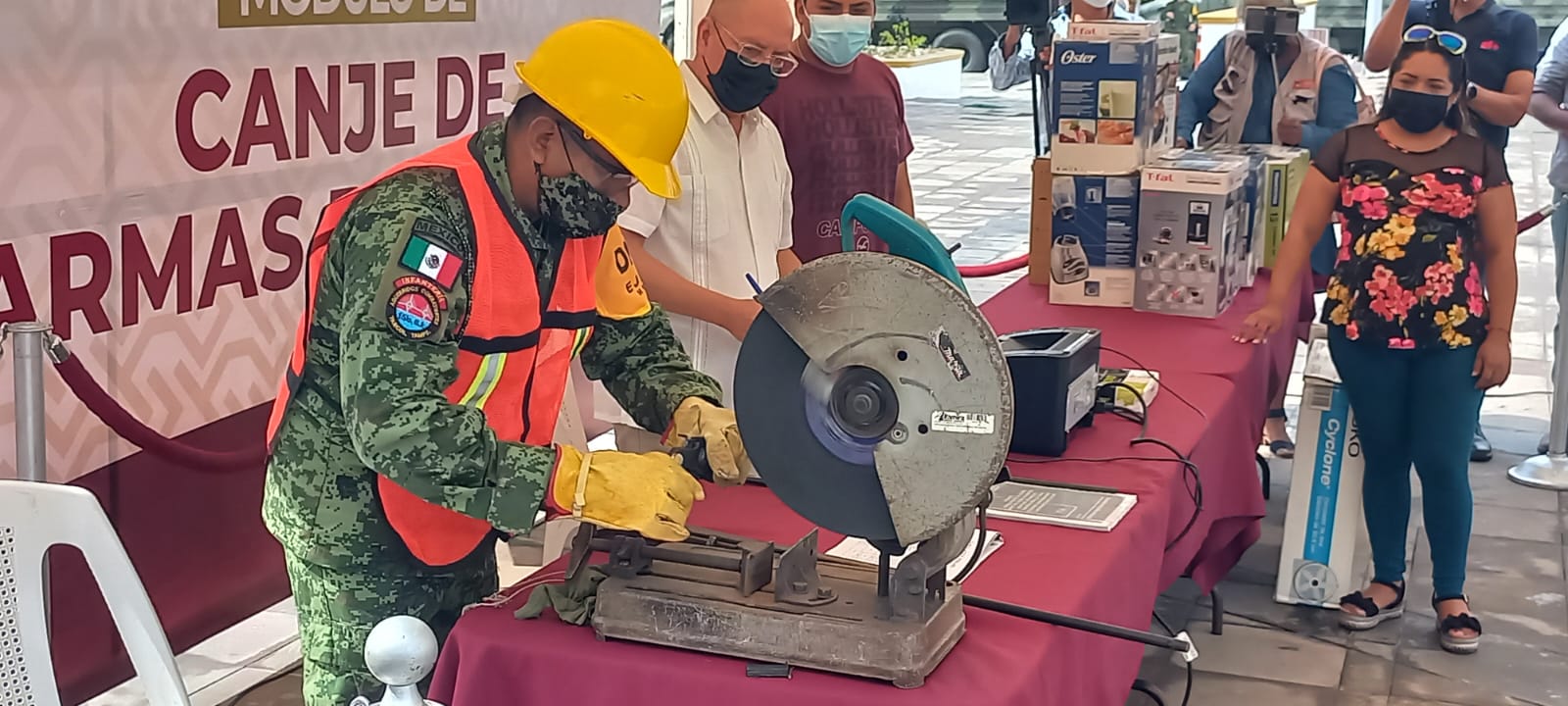 Asimismo, se informó que quienes cuenten con cualquier tipo de armamento, municiones o explosivos, pueden acercarse a este módulo de canje, y el artefacto en cuestión será destruido al momento e intercambiado por dinero en efectivo o algún electrodoméstico según el tabulador con el que cuenta la SEDENA para tal efecto; todo ello sin cuestionar al usuario sobre la adquisición del arma, ni tener alguna consecuencia jurídica por portarla.