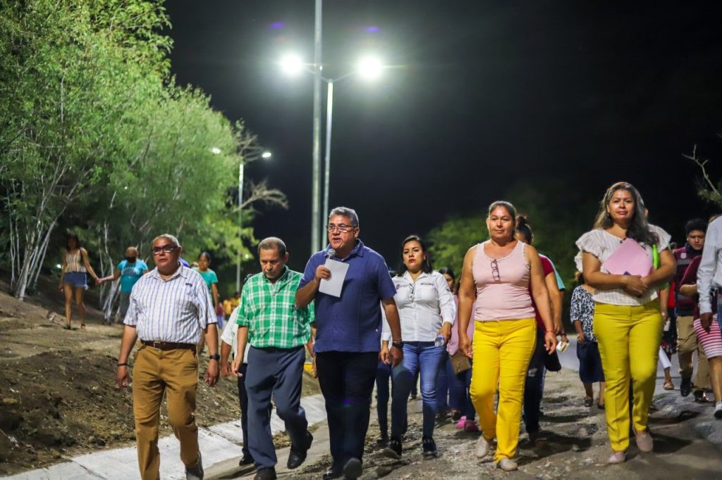 El jefe edilicio estuvo acompañado de su esposa, la C. P. Rossy Luque de Martínez, presidenta del Sistema DIF, quienes en conjunto con vecinos de este y otros sectores aledaños efectuaron el encendido de las 27 luminarias de 150 watts colocadas en dicho punto y que vendrán a elevar la seguridad y calidad de vida de quienes ahí habitan.