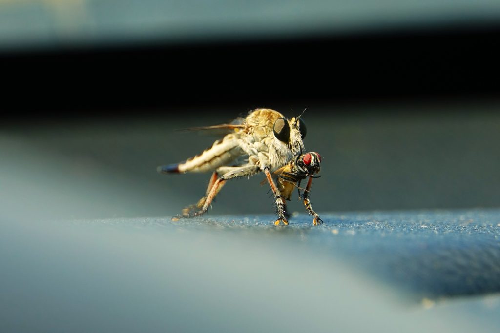Reynosa, Tamps.- Existen más de 7 Mil especies de moscas ladronas en todo el mundo, en América del Norte casi Un mil son las características morfológicas que presentan estos insectos tienen unas patas robustas y con espinas, el bigote muy peculiar con cerdas en toda la cara (bigote) y tres ojos simples llamados ocelos, situados en una pequeña depresión muy característica entre sus dos grandes ojos compuestos.