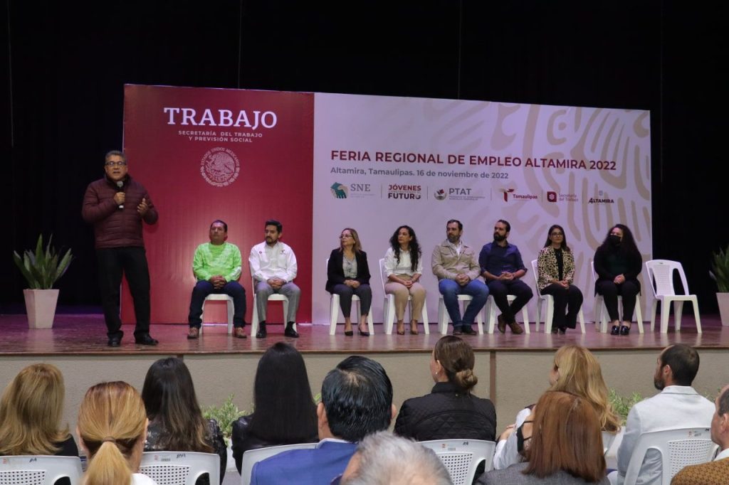 Altamira, Tamps.- Un total de mil 64 puestos laborales, ofrecidos por 159 empresas fue lo ofertado en la Feria Regional del Empleo 2022, celebrada en la ciudad y puerto de Altamira, evento que estuvo organizado por la Secretaría del Trabajo y Previsión Social estatal y en la cual asistió como invitado especial el presidente municipal, Mtro. Armando Martínez Manríquez.