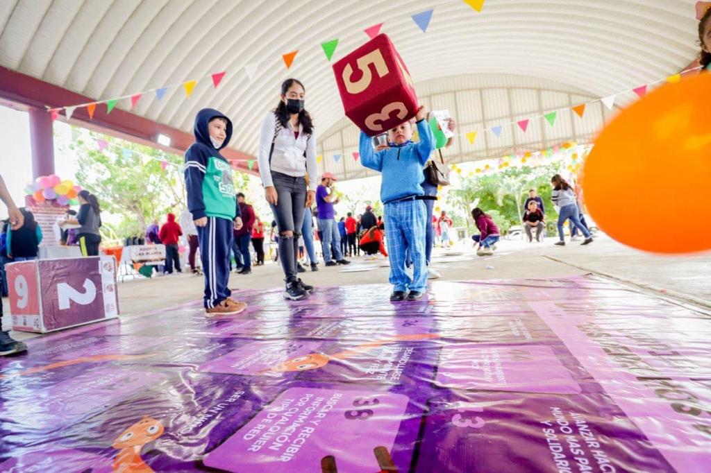 Altamira, Tamps.- Alrededor de 12 stands con múltiples juegos y actividades fueron montados en el domo del ejido Esteros, como parte de la “Feria de los Derechos de los Niños”, organizada por el Sistema DIF Altamira, actividad que contó con la asistencia de la presidenta del organismo, C.P. Rossy Luque de Martínez.