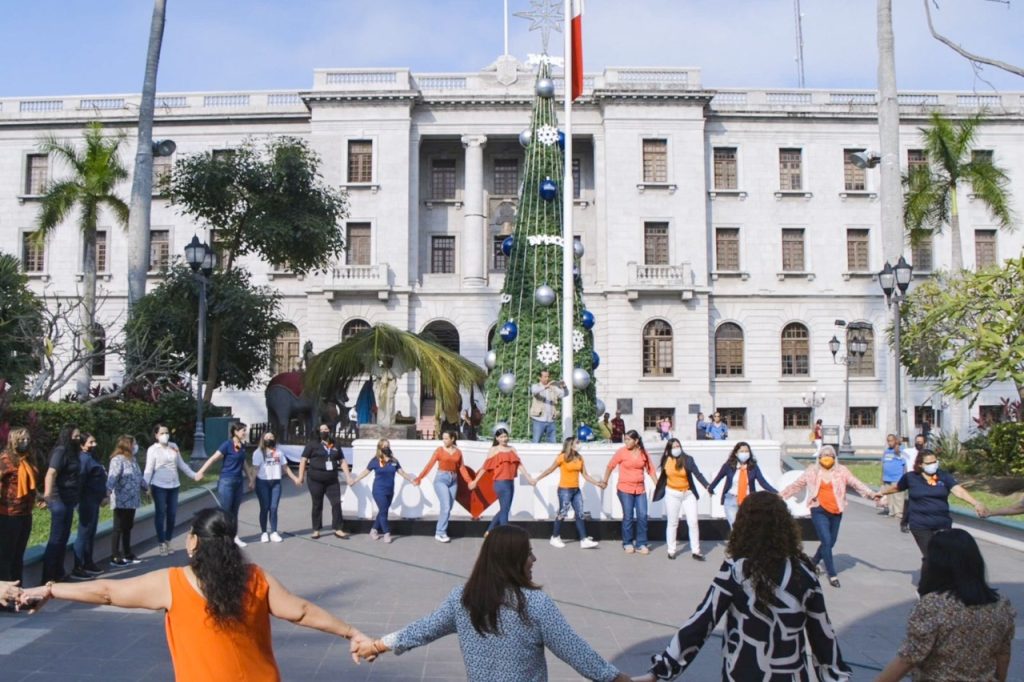 A la Cadena de Sororidad se unieron ciudadanas espontáneas que apoyaron las acciones que en beneficio de la seguridad de las mujeres lleva a cabo el Ayuntamiento porteño, el Sistema DIF y el Instituto Municipal de la Mujer.