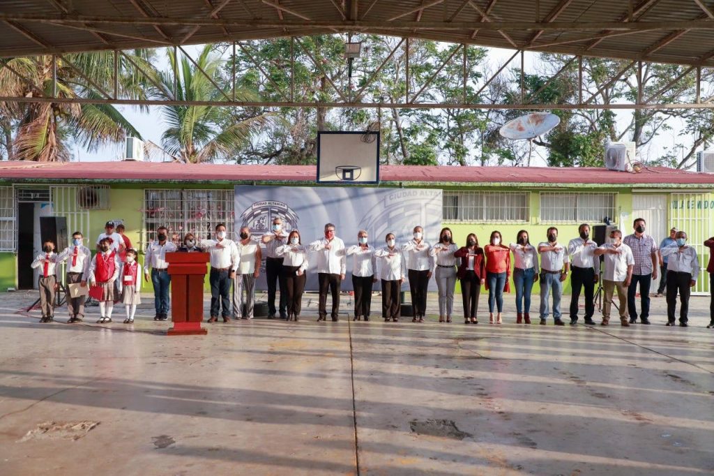 Realizan ceremonia cívica de honores al lábaro patrio en la Esc. Prim. «México» de Altamira