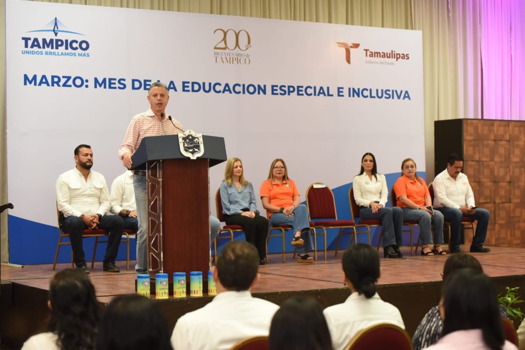 Tampico, Tamps.- Al encabezar el inicio del Mes de la Educación Especial en la Casa de la Cultura, el Presidente Municipal Chucho Nader reiteró su compromiso con el desarrollo educativo de todos los niveles escolares; y sostuvo que la inclusión educativa es un derecho que en Tampico y en Tamaulipas se fortalece a través de las Unidades de Apoyo a la Educación y en los Centros de Atención Múltiple.