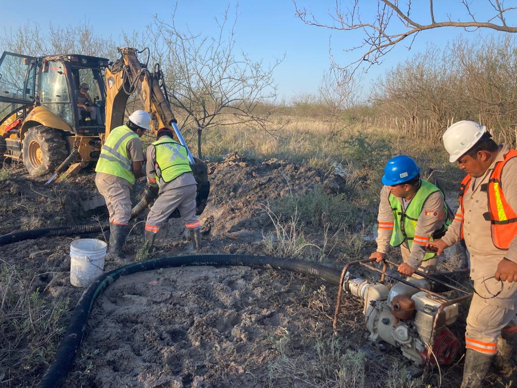 Altamira, Tamps.- Trabajando las 24 horas del día, los 365 días del año, personal de la Comisión Municipal de Agua Potable y Alcantarillado de Altamira, que dirige el Ing. Omar Hernández Leines, concluyó exitosamente la reparación de una fuga de agua cruda en una línea de conducción del sistema de captación Tomates a la planta Esteros.