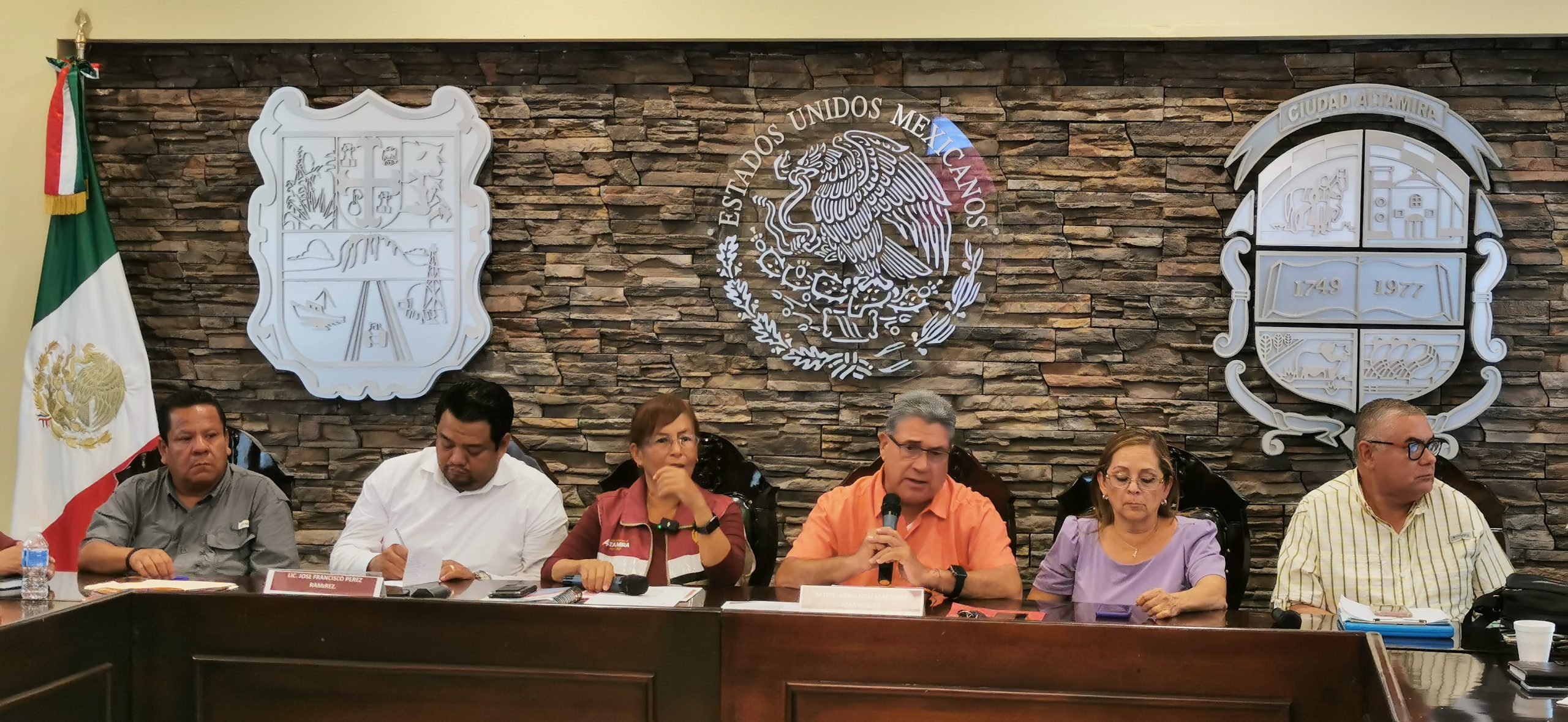 Altamira, Tamps.- En una conferencia de prensa llevada a cabo en la Sala de Cabildo de la presidencia municipal de Altamira, el alcalde Armando Martínez Manríquez anunció una serie de acciones preventivas que se implementarán en lo próximo para hacer frente a la presente ola de calor.