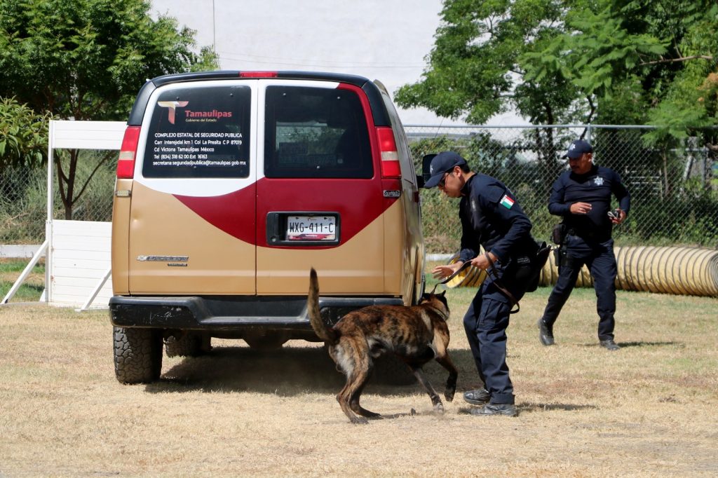 Posteriormente, los caninos son llevados a prácticas en campo, en donde se cuentan con las máximas medidas de protección a su integridad para evitar afectaciones debido a las inclemencias del clima y al agotamiento físico, de esta manera, la SSPT garantiza a las y los tamaulipecos elementos capacitados para salvaguardar su seguridad en cada una de las divisiones de la Guardia Estatal.