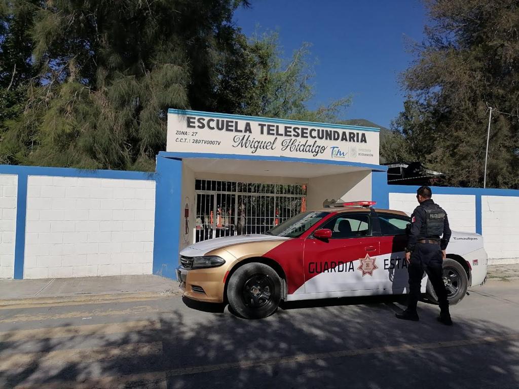 Ciudad Victoria, Tamps.- Ante la falta de personal docente en instituciones educativas durante el periodo vacacional, personal de la Guardia Estatal mantiene vigilancia en planteles a través del operativo ‘’Escuela Segura’’.