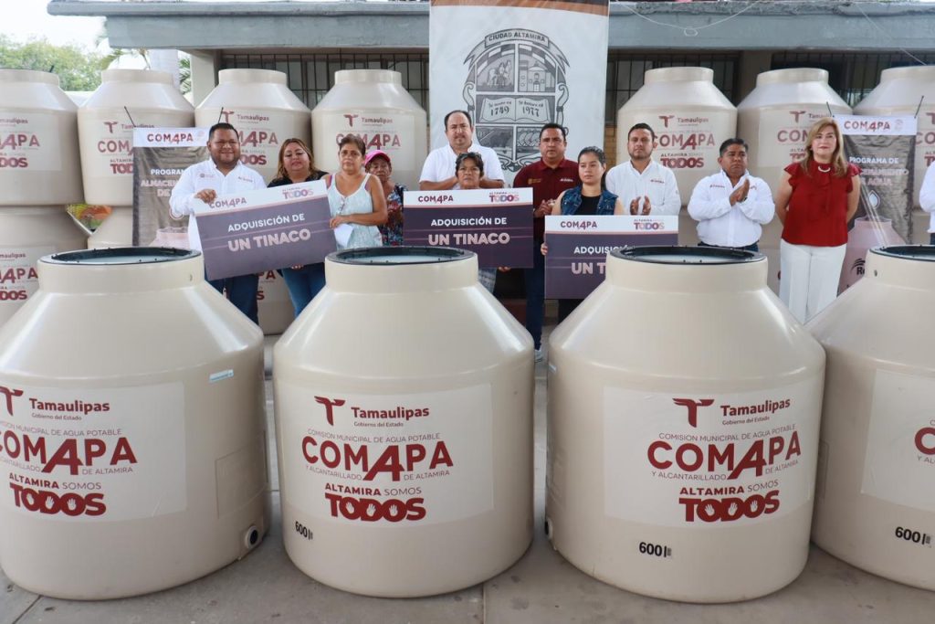 A la fecha, mediante el programa Almacenamiento de Agua, se han distribuido en Altamira alrededor de 200 tinacos con capacidad para 600 litros; se pueden adquirir a un precio de 1,972 pesos (ahorro de un 38 por ciento del valor del mercado que es de 3,177 pesos). El usuario realizará su pago con cargo al recibo de agua y facilidades de pago de 12 parcialidades de 164.33 pesos, sin anticipo, debiendo estar al corriente en el pago de agua, contar con medidor, además de llenar una solicitud y presentar una copia de identificación oficial.