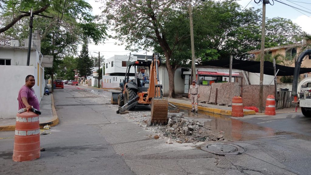 Asimismo, se desarrolla la sustitución de 48 metros de tubería de pvc alcantarillado, de 10 pulgadas, en calles Guadalupe Victoria, entre Capitán Pérez y Privada Bernal, de la Zona Centro.