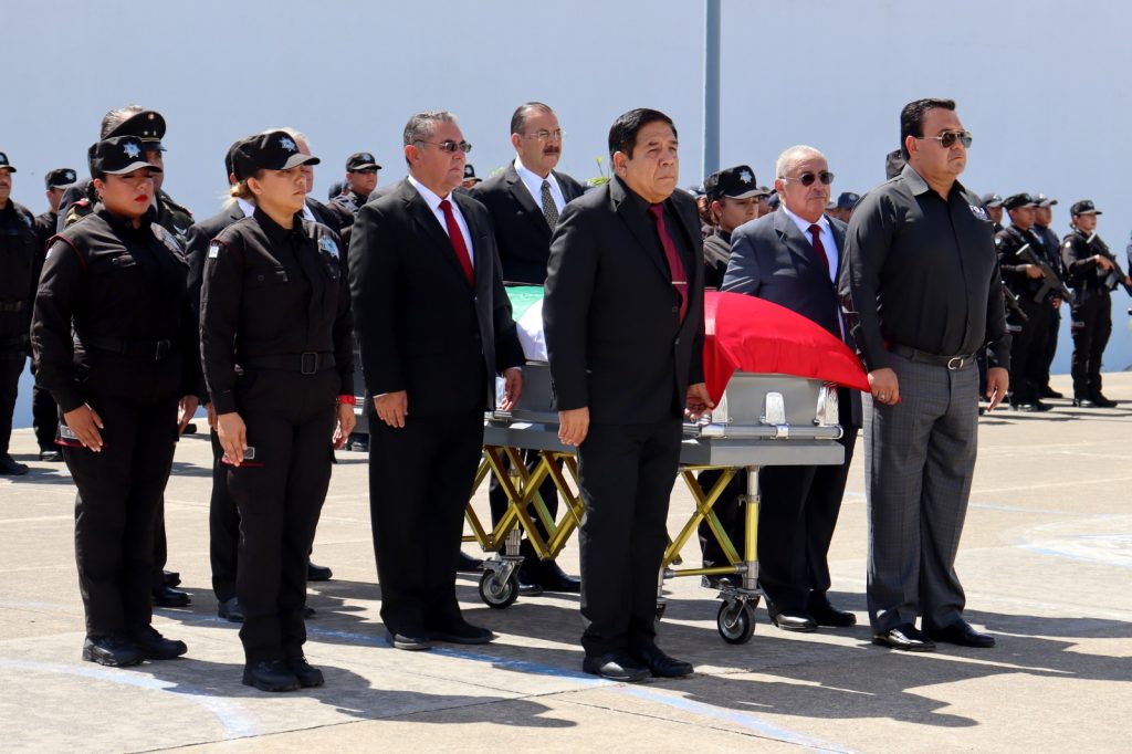 Acompañado de familiares y seres queridos, fue recibido en la explanada del Complejo Estatal de Seguridad Pública con honores fúnebres en reconocimiento a su labor desempeñada a lo largo de siete años desde su integración a esta corporación policial en el año 2016.