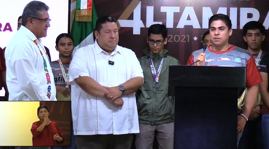 Preciso que “el día de ayer, el equipo de atletismo que hicimos, ganó el primero y segundo lugar en la carrera del Instituto Politécnico Nacional (IPN) (…) este grupo de muchachos la mayoría son de aquí de Altamira”.