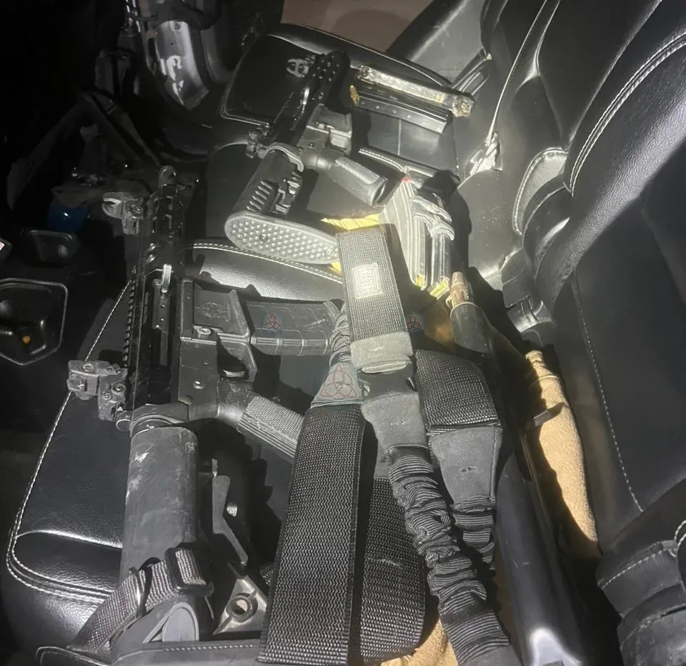 Al aproximarse al vehículo, los guardias nacionales detectaron que en asiento trasero había armamento, por lo que realizaron una inspección minuciosa y localizaron 3 armas largas, 1 arma corta, 8 cargadores, y 129 cartuchos útiles.