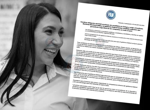En un comunicado difundido en la red social X (anteriormente conocida como Twitter), el PAN expresó su repudio al cobarde acto que cobró la vida de la candidata Gisela Gaytán.