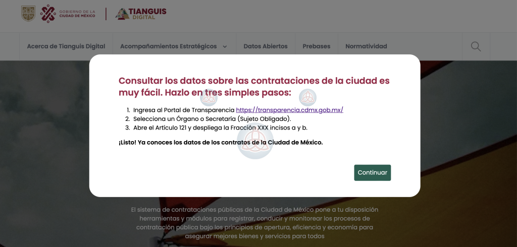 Además, acceder a la información sobre contrataciones a través del Tianguis Digital resulta complicado y engorroso. Se requiere navegar a través de múltiples enlaces y descargar numerosos documentos de las páginas de transparencia de cada dependencia, que a menudo están desactualizadas o incompletas, indican los investigadores.