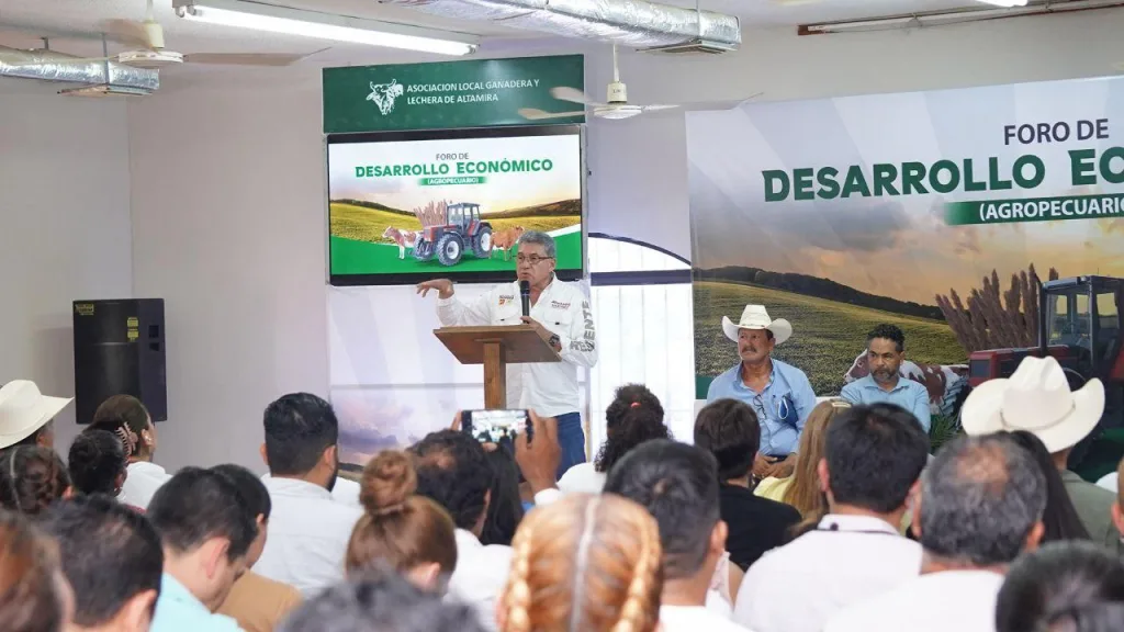Altamira, Tamps. – El candidato a la presidencia municipal de Altamira por la coalición “Sigamos Haciendo Historia”, Dr. Armando Martínez Manríquez, fue invitado a participar en el 1er Foro de Desarrollo Económico Agropecuario, organizado por la Asociación Local Ganadera y Lechera de la urbe industrial, encuentro en el que el candidato abordó los riesgos y oportunidades de este vital sector.