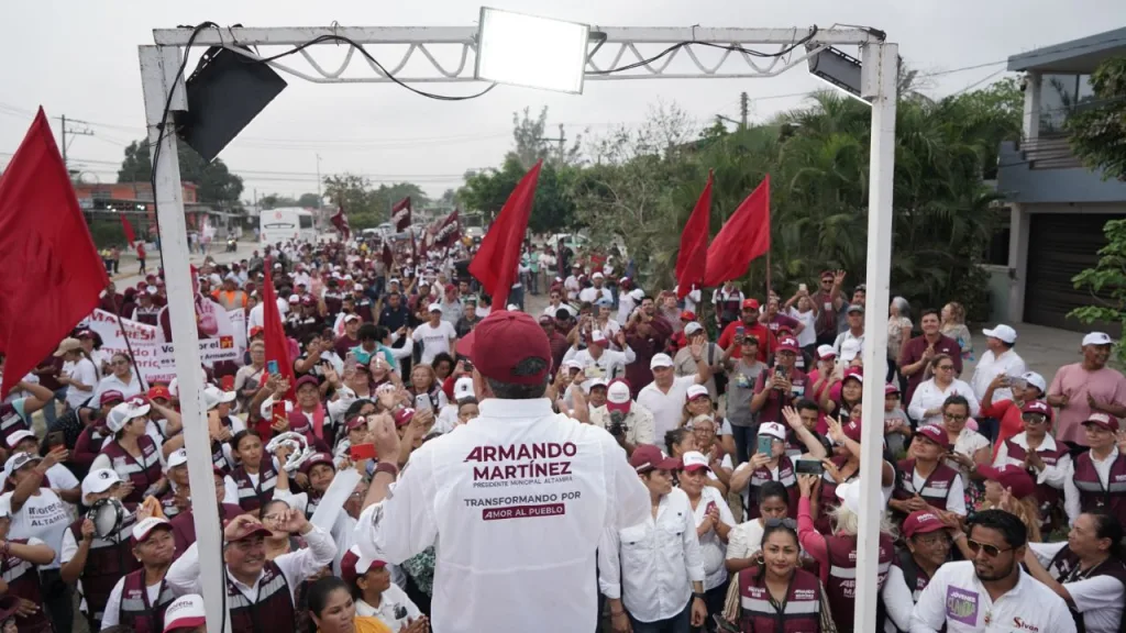 Altamira, Tamps.- Un extraordinario número de personas se congregó en la colonia La Morita, ubicada en el sector Monte Alto de Altamira para acompañar en su recorrido proselitista casa por casa al Dr. Armando Martínez Manríquez, candidato a la reelección por la alcaldía de Altamira bajo la coalición “Sigamos Haciendo Historia” (MORENA, PVEM y PT).