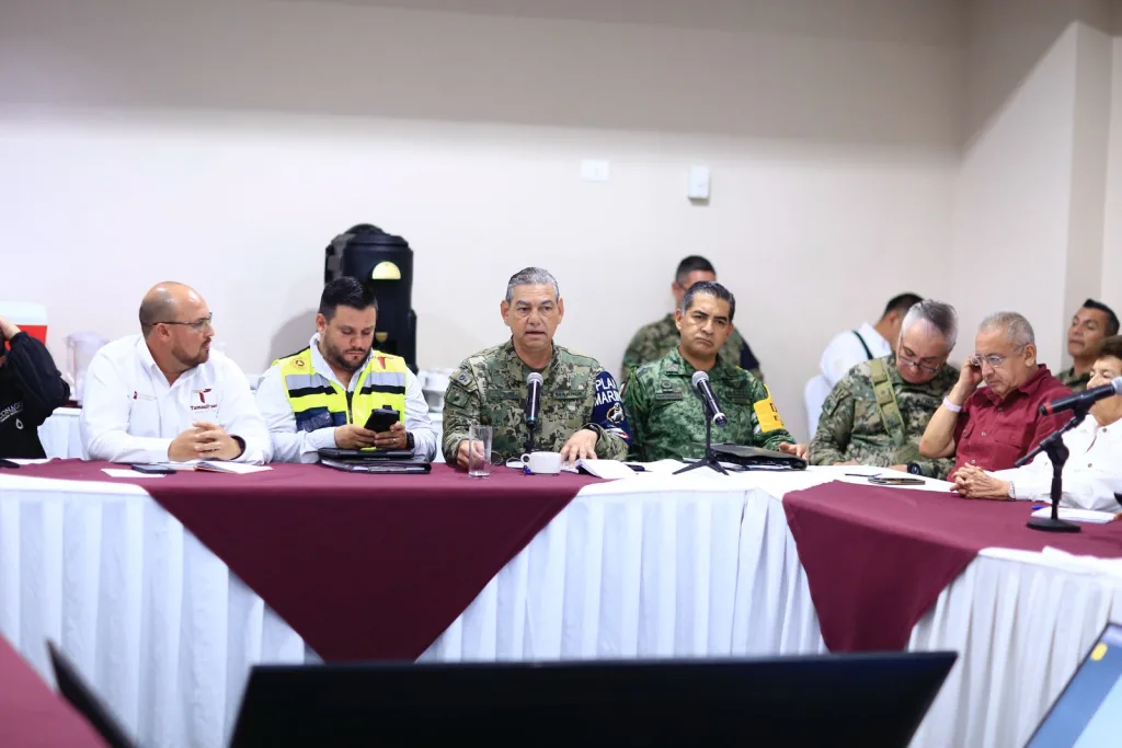 El secretario general de Gobierno estuvo acompañado por el secretario de Recursos Hidráulicos del Estado, Raúl Quiroga Álvarez y por el coordinador estatal de Protección Civil, Luis Gerardo González De la Fuente, así como por mandos de la SEDENA, Marina, Guardia Nacional, Guardia Estatal y representantes de la Coordinación Nacional de Protección Civil y de la Comisión Nacional del Agua.