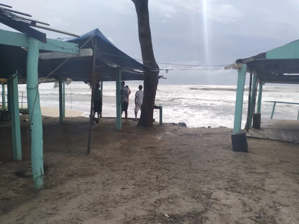 Actualmente existen rachas de vientos de aproximadamente 40 kilómetros por hora y marejada alta según lo informan pobladores, comentan que se espera que esta Tormenta entre a tierra entre la tarde noche de este día.
