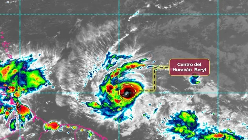 El Servicio Meteorológico Nacional indicó, que a las 15:00 horas de este sábado, el huracán Beryl, avanza a 35 kilómetros por hora, con vientos sostenidos 120 km, y rachas de 150 km/h.
