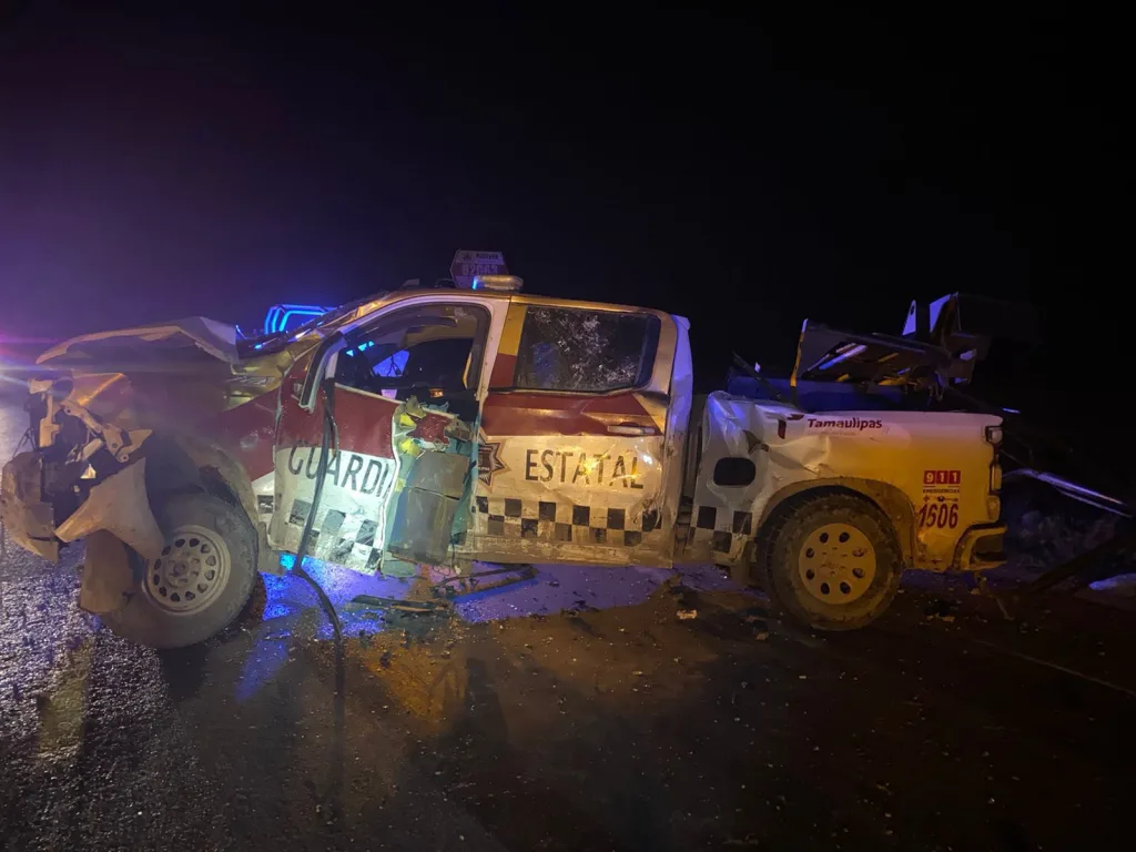 Indicó, que las autoridades detectaron una camioneta con logotipos de la Guardia Estatal circulando en dirección a Matamoros, la cual posteriormente estuvo involucrada en una colisión con un tractocamión.