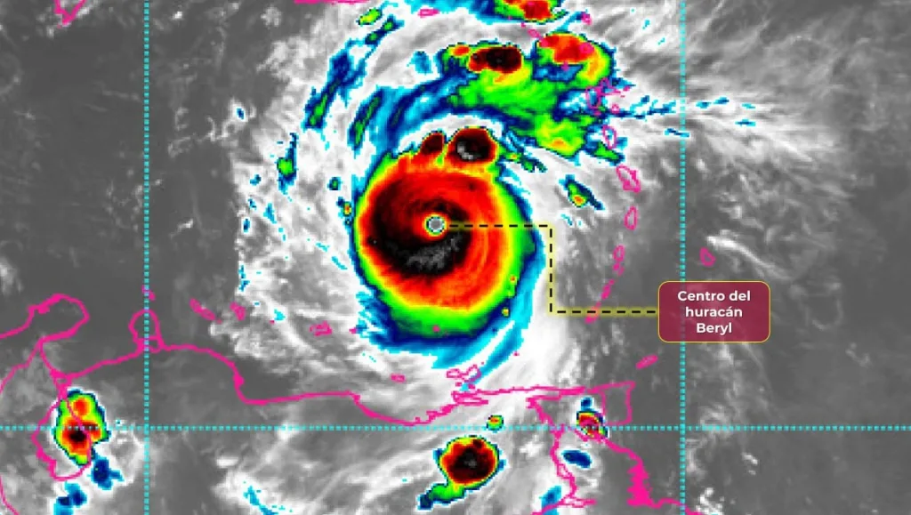 Por su parte el Servicio Nacional de Meteorología de Estados Unidos (NWS), destacó, que Beryl, el primer huracán de categoría 5 registrado en la cuenca del Atlántico, se ha intensificado esta noche en el Mar Caribe, al oeste de las Antillas Menores.