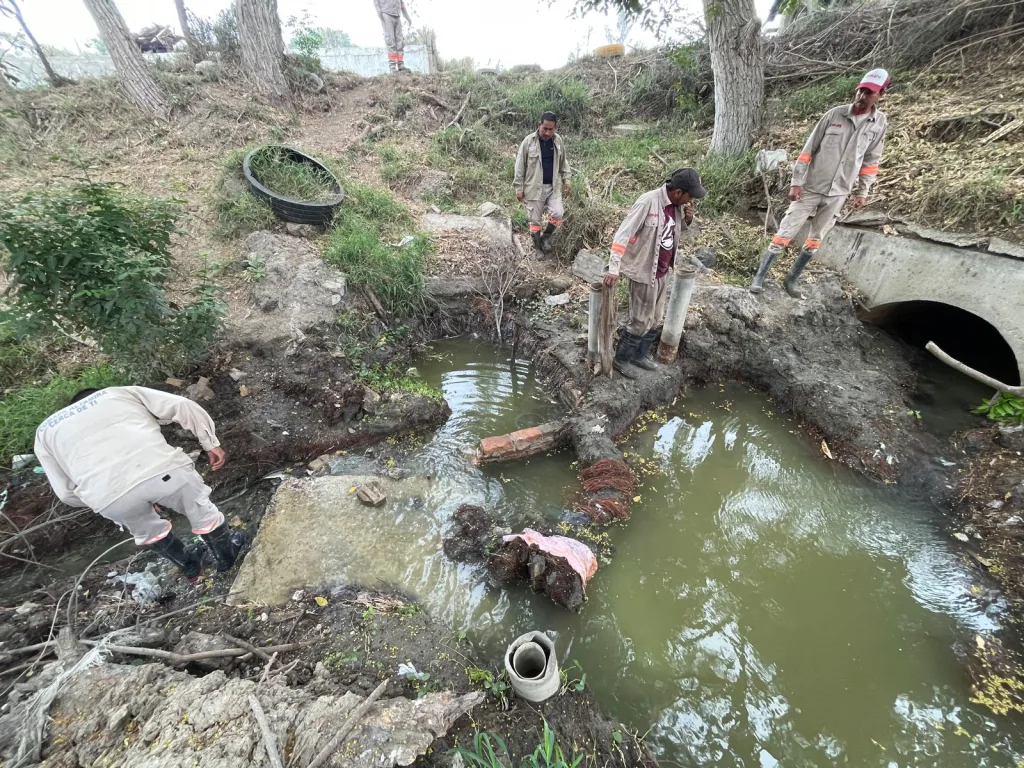 Asimismo, cuadrillas de trabajadores de esta comisión realizaron la reparación de una fuga de agua potable en una línea de conducción de 24 pulgadas del Bulevar PRIMEX.