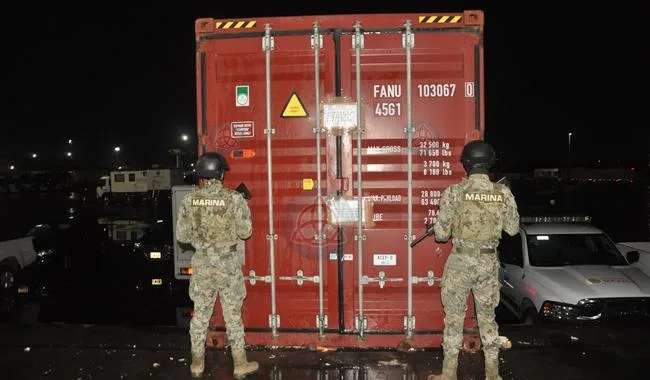 Según los protocolos establecidos, la Fiscalía General de la República (FGR) llevó a cabo las diligencias e investigaciones correspondientes, implementando inspecciones tanto no intrusivas como intrusivas. En dichas inspecciones participaron binomios caninos, quienes modificaron su conducta al aproximarse a la mercancía, lo que llevó a la revisión y apertura del contenedor.