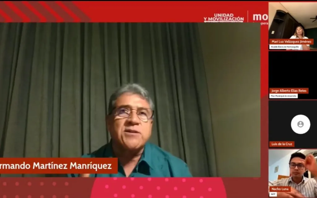 Altamira, Tamps.- El presidente municipal de Altamira, Dr. Armando Martínez Manríquez, fue invitado a participar en el foro virtual «Diálogos desde el Municipio», organizado por el Instituto Nacional de Formación Política del partido MORENA, como parte de su programa de formación municipal. Durante su intervención, el alcalde altamirense compartió su experiencia y visión sobre la planeación democrática y el desarrollo municipal, siendo invitado junto con otros alcaldes gracias a los importantes logros alcanzados en su gestión.