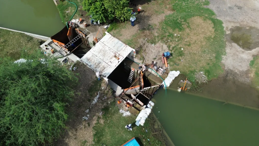 Las labores en mención consistieron en la restauración y mantenimiento general completo a sistema de esclusa de las compuertas en el ejido Mata de la Monteada, junto al estero El Camalote, con trabajos a detalle en mecanismo, limpieza total al dique de la esclusa, soldadura en diferentes puntos.