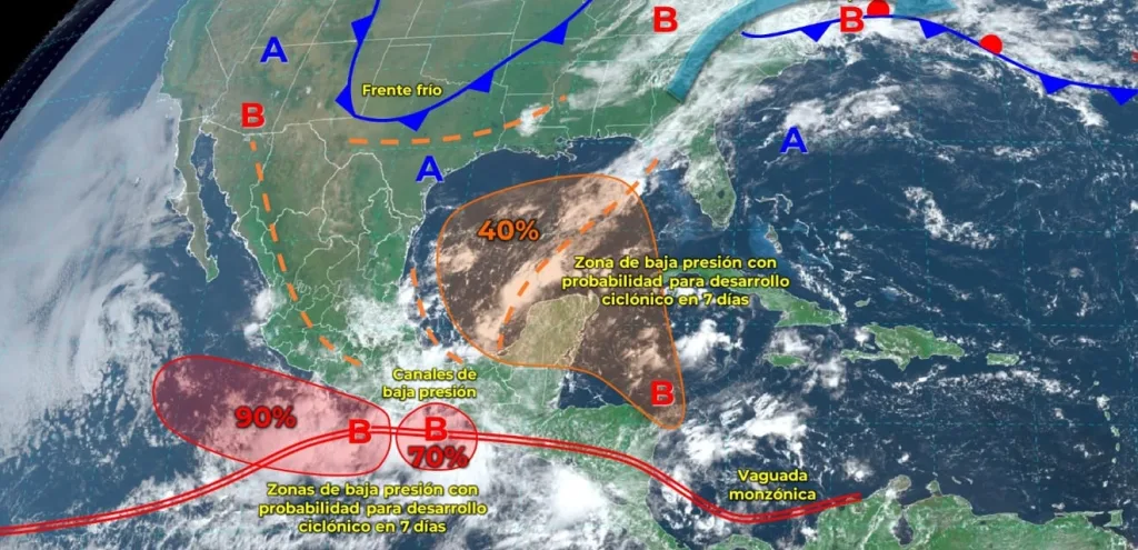 Las costas de Veracruz podrían presentar oleaje de 2 a 3 metros de altura, mientras que en Tamaulipas, Chiapas, Guerrero y el Istmo de Tehuantepec se espera un oleaje de 1 a 2 metros.