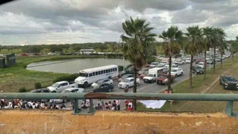 El bloqueo se efectuó en el puente ‘El Caracol’, frente a la plaza Periférico y la zona industrial de maquiladoras, generando un caos vial que afectó a miles s de automovilistas.