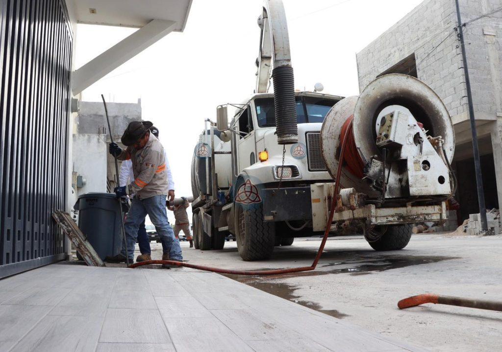 Empleando camiones tipo vactor, se procedió al desazolve y mantenimiento de pozos de visita en Segunda Avenida de la colonia Azteca, y Circuito del Muelle del conjunto habitacional Laguna Florida.