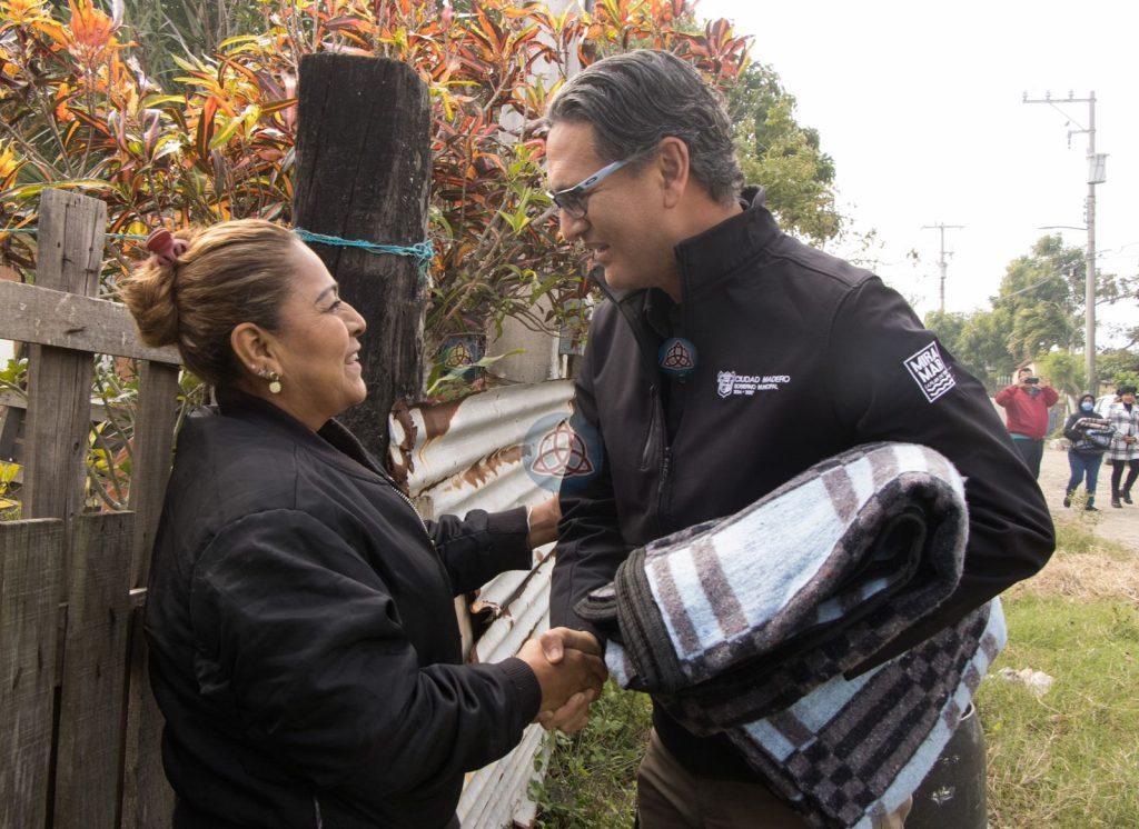 Ciudad Madero, Tamps.- Ante la drástica disminución de las temperaturas en la región, el presidente municipal Erasmo González Robledo ha continuado con la entrega de cobertores de manera domiciliaria en las colonias más vulnerables; esta acción tiene como objetivo proporcionar calor a los habitantes y, al mismo tiempo, se les insta a acudir a los albergues si es necesario, especialmente para proteger a los niños, personas con discapacidad y adultos mayores.