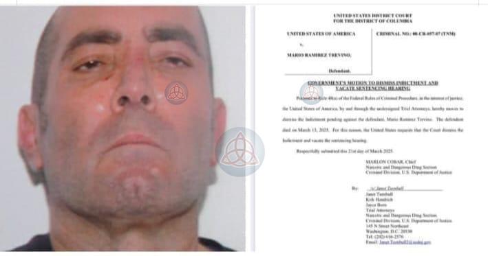 De acuerdo con la moción judicial, fechada el 21 de marzo, “el acusado murió el 13 de marzo”, razón por la cual el Gobierno de Estados Unidos pidió cerrar formalmente el caso. El documento fue firmado por los fiscales Janet Turnbull, Kirk Handrich y Jayce Born, pertenecientes a la Sección de Narcóticos y Drogas Peligrosas del Departamento de Justicia.