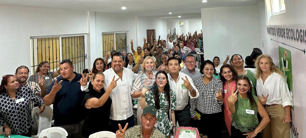 Durante los festejos Fernando Pumarejo estuvo acompañado de los coordinadores del Partido Verde, la Secretaria Estatal de Organización Esmeralda Peña Jácome, Secretaria Estatal de la Mujer Rosa Muela y Coordinadora de Mujeres Zona Sur Elizabeth Humphrey.