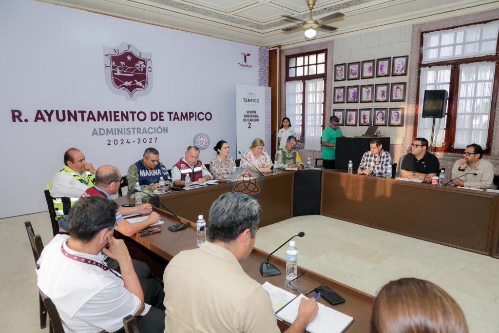 Tampico, Tamps.- Reafirmando su compromiso con la seguridad y el bienestar de la ciudadanía, la Presidenta Municipal de Tampico, Mónica Villarreal Anaya, encabezó la Reunión del Consejo de Protección Civil, junto a autoridades de los tres niveles de gobierno, con el propósito de conocer y analizar el reporte de las lluvias registradas recientemente en la región.