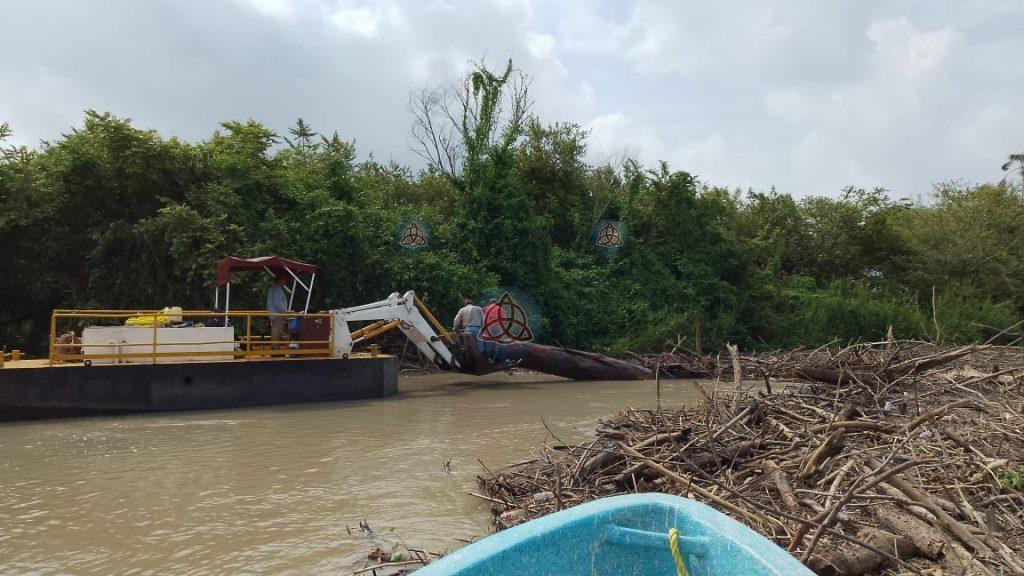 Tampico, Tamps.- El Gobierno Municipal de Tampico que preside la alcaldesa Mónica Villarreal Anaya, a través de la dirección de Obras Públicas, llevó a cabo el retiro de palizada en el Sistema Lagunario Chairel, la cual fue arrastrada por los afluentes de los ríos debido a las recientes lluvias registradas en la región.