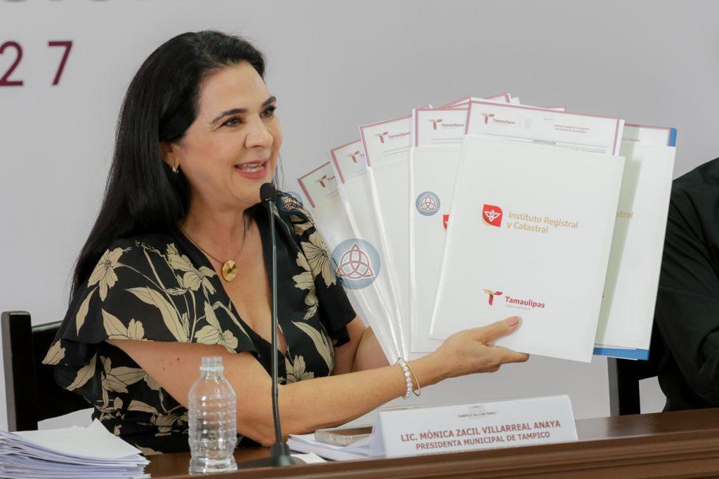 Tampico, Tamps.- Durante la Sesión de Cabildo número 35, encabezada por la presidenta municipal Mónica Villarreal Anaya, se aprobó la incorporación de 43 espacios públicos al patrimonio del municipio, con el objetivo de avanzar en su escrituración legal y brindar certeza jurídica sobre estos bienes que benefician directamente a la ciudadanía.