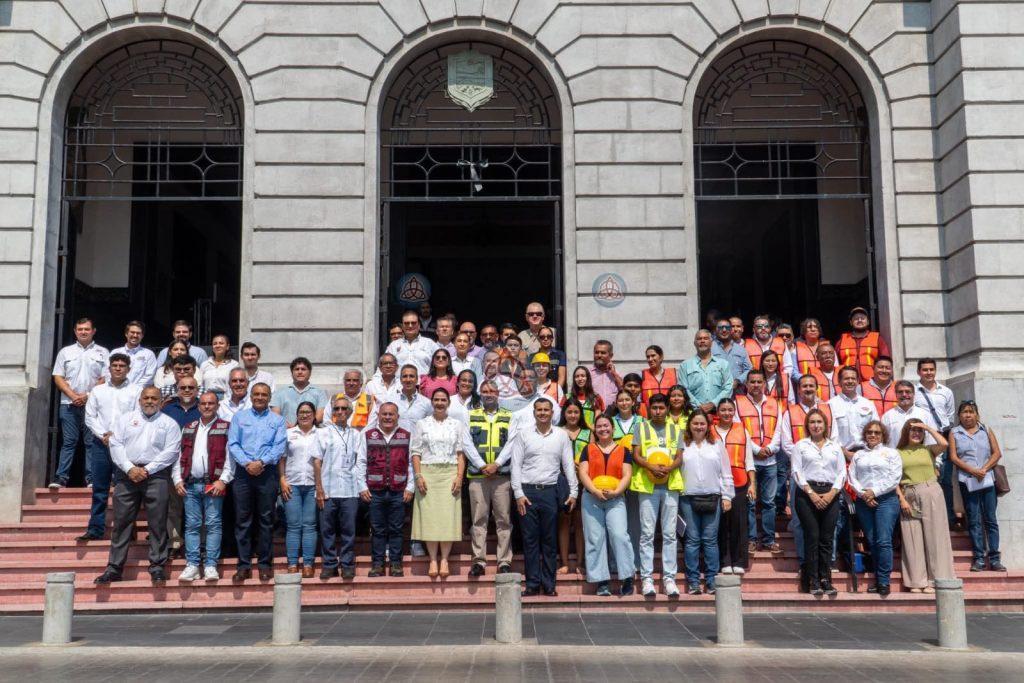 Por su parte, el director de Protección Civil, Ing. José Antonio Marín Flores, detalló que esta primera etapa del Plan de Mitigación abarca un polígono de 85 manzanas en el centro histórico, donde los organismos participantes realizan visitas a los inmuebles asignados, clasifican su nivel de riesgo y registran la información mediante la plataforma “Edificio Seguro”.