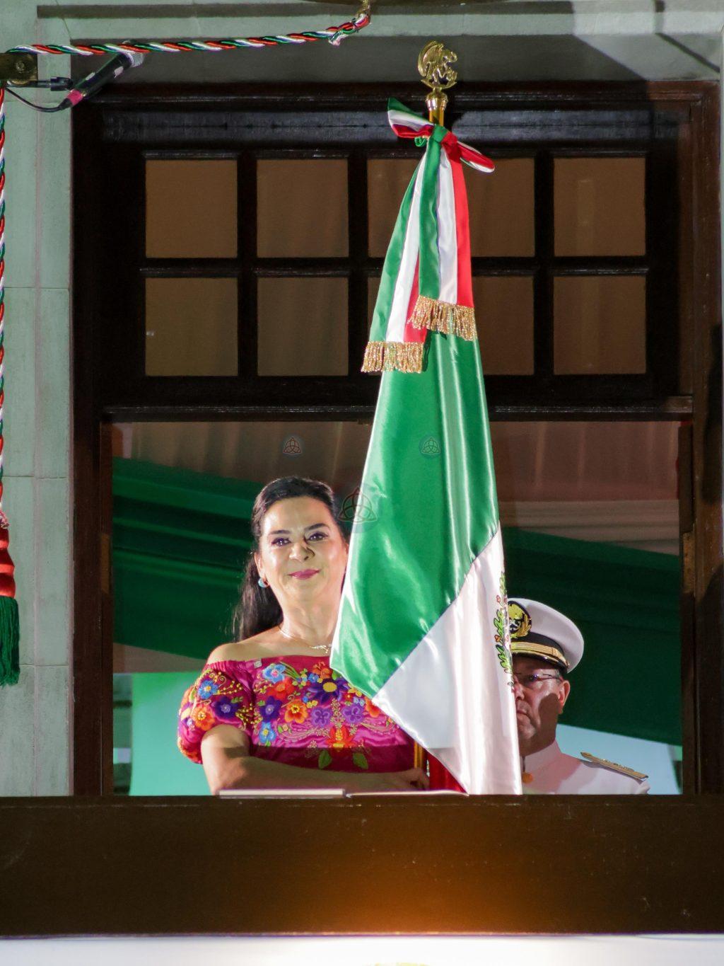 En punto de las 22:30 horas, la banda de guerra dio marcha a la ceremonia protocolaria con los acordes de ordenanza, en tanto la escolta del Quinceavo Batallón de Infantería cedía el lábaro patrio a la alcaldesa, para que, desde el balcón central replicara la arenga proclamada en 1810 por el cura Miguel Hidalgo y Costilla.