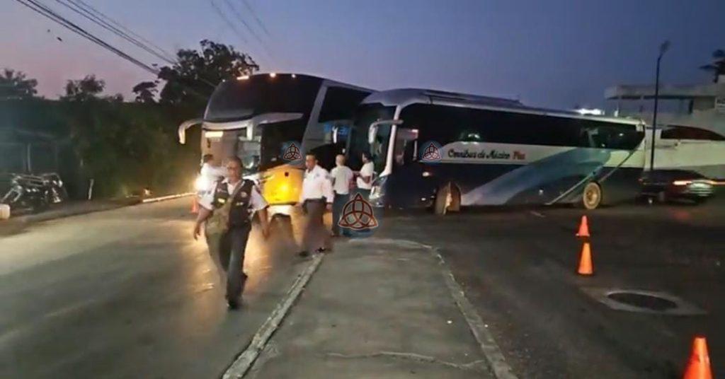 Brigadistas de Sinarem apoyaron en el abanderamiento y control del tráfico, mientras las autoridades retiraban los autobuses dañados.