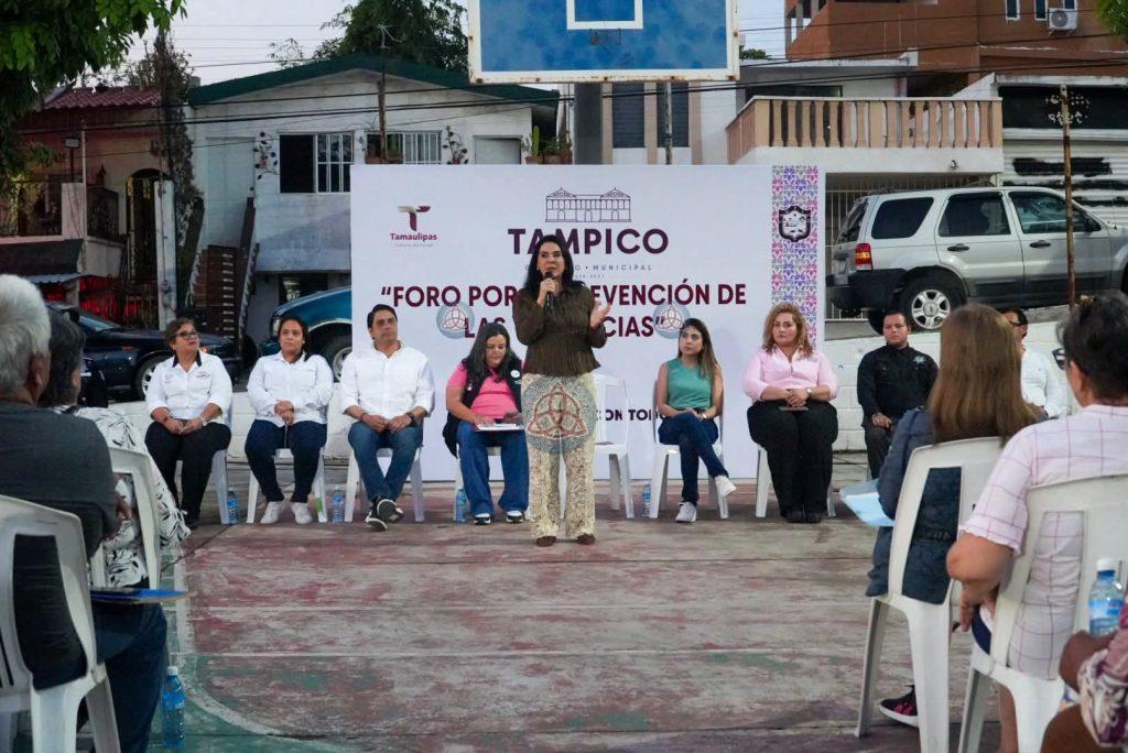 Tampico, Tamps.- Reafirmando el compromiso de construir comunidades más seguras y fortalecer la colaboración entre ciudadanía y gobierno, la presidenta municipal Mónica Villarreal Anaya encabezó el Tercer Foro por la Prevención de las Violencias, realizado en la colonia Echeverría.