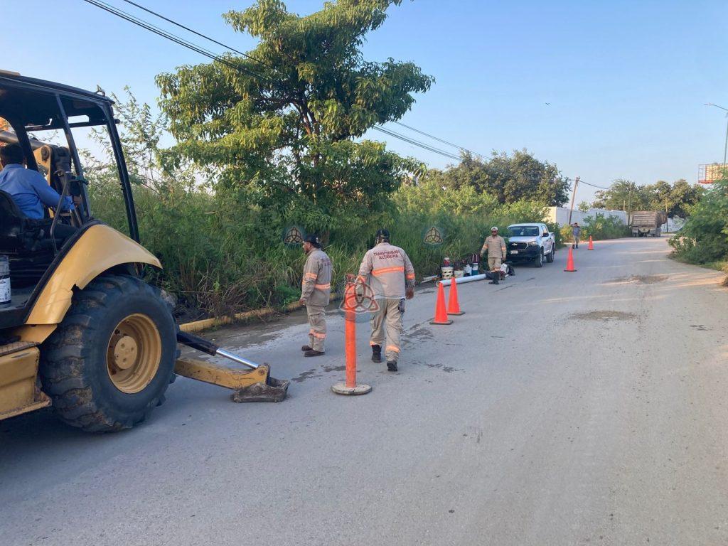 De igual manera, se repararon fugas de agua potable en la calle Guatambú esquina con Mora Sur del Fraccionamiento Arboledas, así como en una línea general de 18 pulgadas ubicada en la carretera Tampico-Mante del sector Fidel Velázquez.