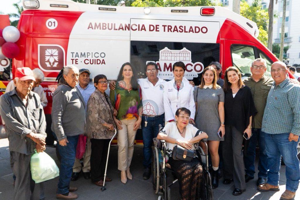 Tampico, Tamps.- A fin de fortalecer los programas de salud y asistencia médica en beneficio de los tampiqueños, la Presidenta municipal, Mónica Villarreal Anaya entregó este día, una moderna ambulancia y una nueva unidad motriz para incorporarlas al traslado de enfermos y a la atención domiciliaria del programa de salud «Casa por Casa».