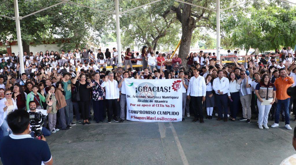 Durante el acto inaugural, el presidente municipal destacó la importancia de invertir en espacios educativos seguros y dignos para los jóvenes altamirenses.