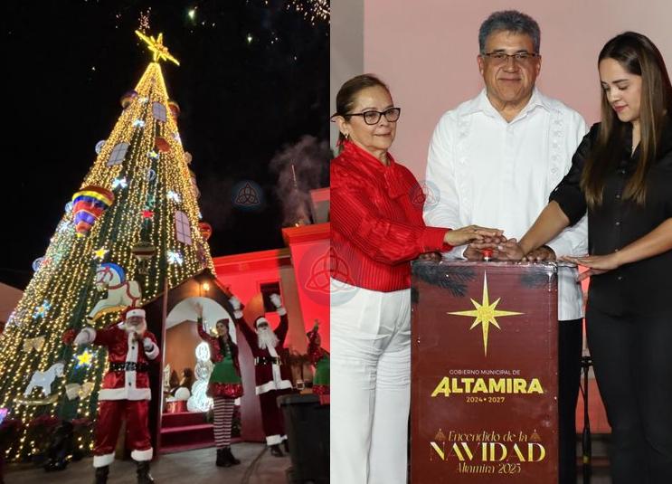 Encienden Pino Monumental en Altamira y dan inicio a las fiestas decembrinas